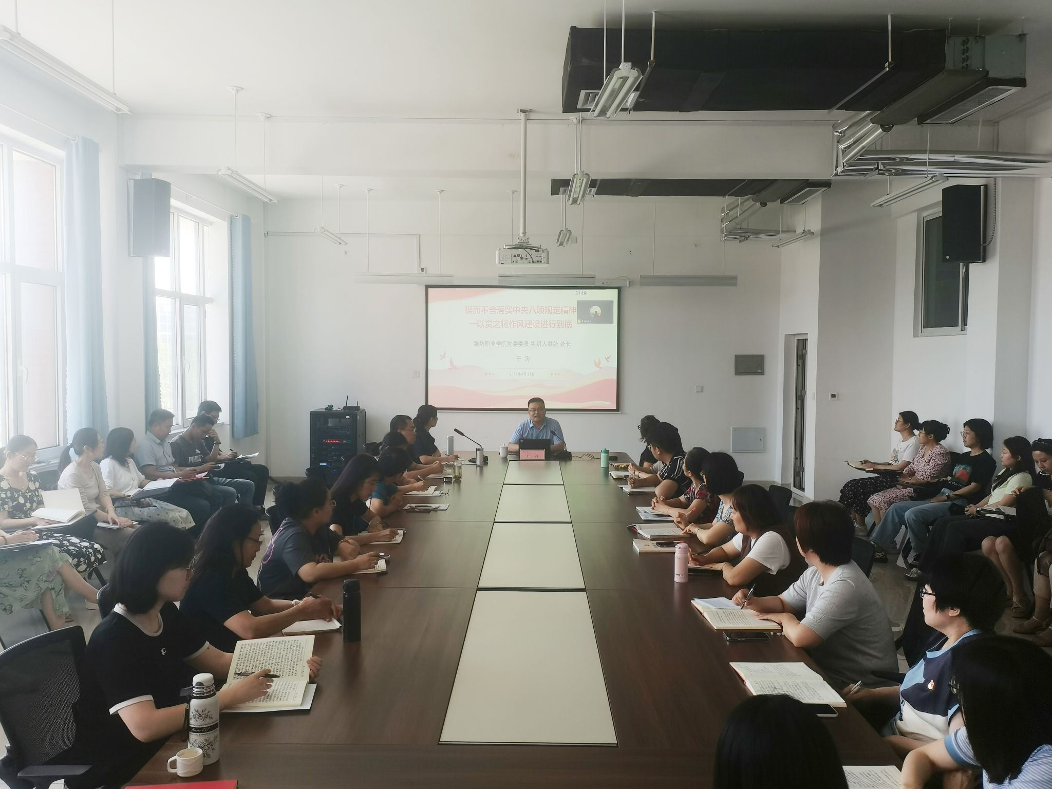 最后,于涛对全体党员教师提出明确要求。一是要提高政治站位,充分认识作风建设的长期性和艰巨性,二是立足本职岗位,在教学、科研、管理等工作中发扬求真务实的作风,三是强化廉洁自律意识,自觉抵制不良风气,树立新时代教师的良好形象。
