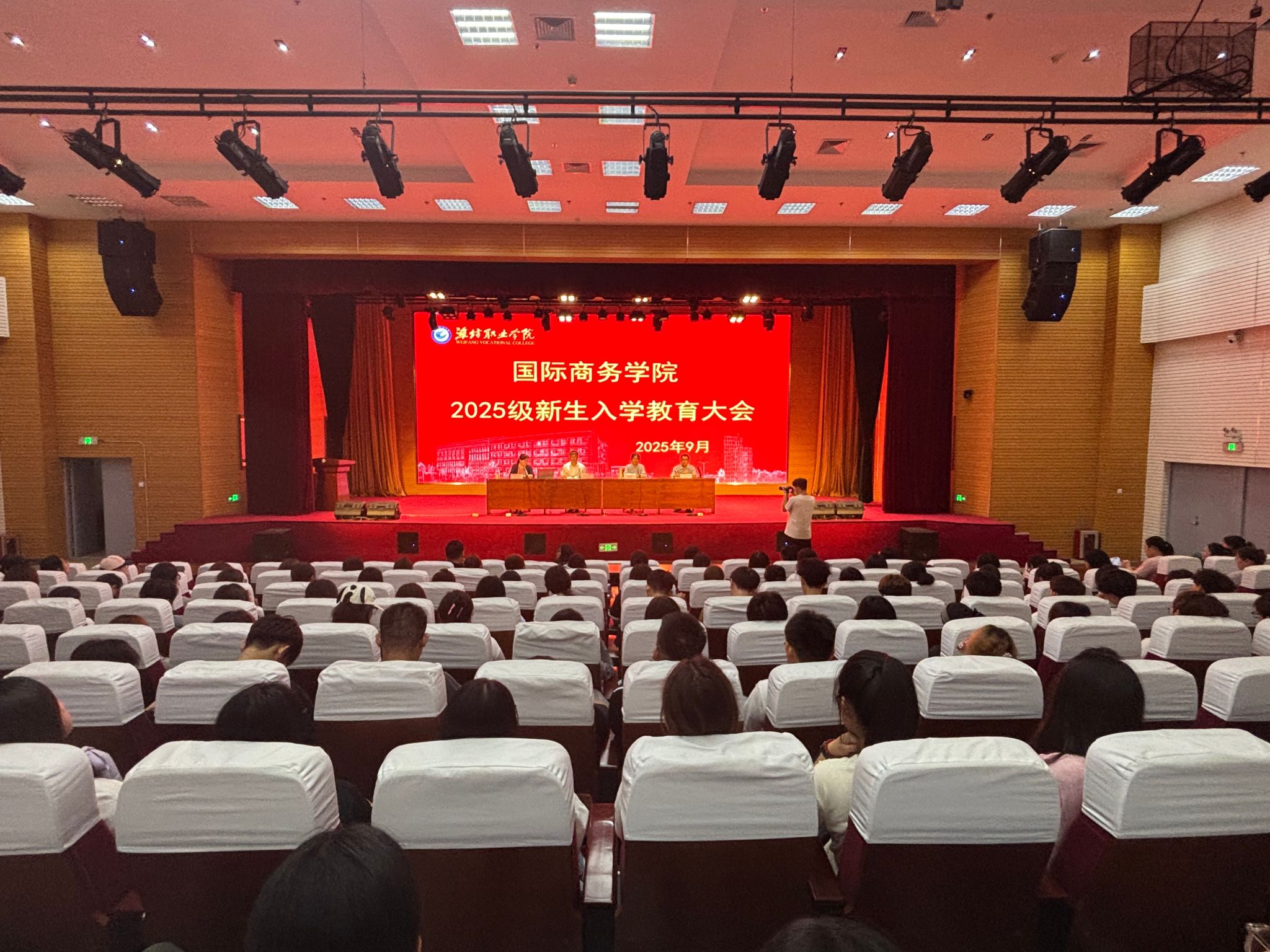 金秋送爽,丹桂飘香。为帮助新生了解潍职、认识潍职、融入潍职,尽快适应大学生活,9月8日下午,国际商务学院在图书馆报告厅召开2025级新生入学教育大会,我院党政班子成员、全体2025级辅导员及新生参加了此次活动。