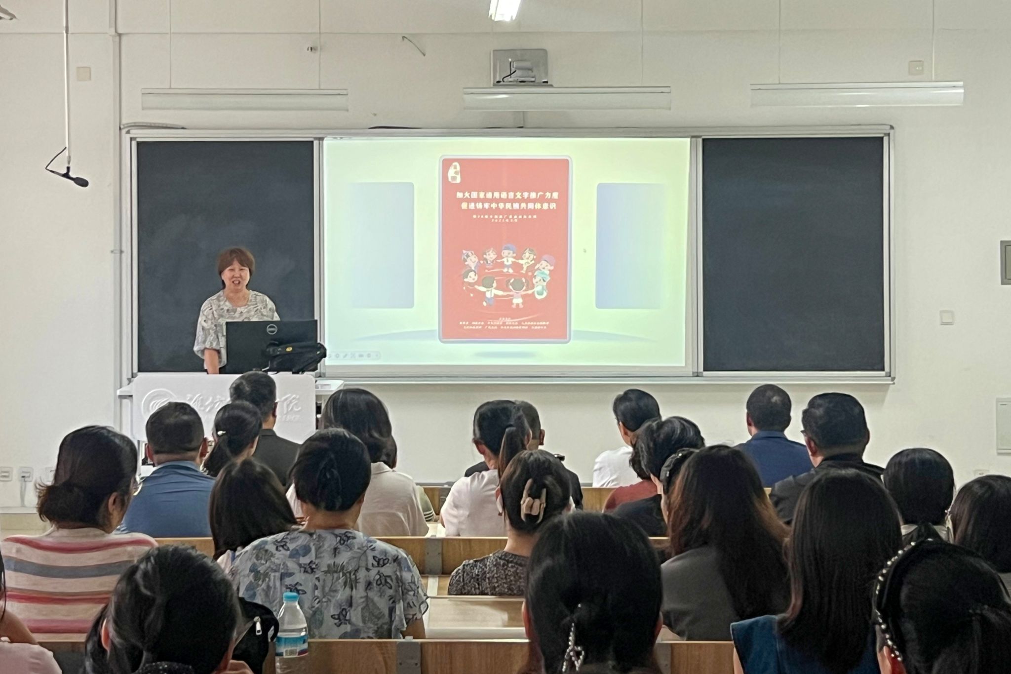 9月15日,国际商务学院在智泽1号楼B114室组织全体教师开展“凝心聚力共推普”推普周专题活动,以实际行动响应《潍坊职业学院第28届推广普通话宣传周活动方案》要求,紧扣“加大国家通用语言文字推广力度,促进铸牢中华民族共同体意识”主题,为学院推普周活动拉开序幕。