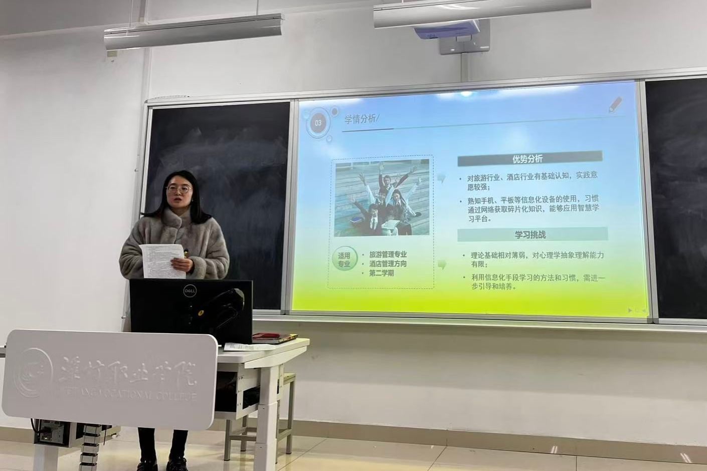 活动现场,教师们紧扣“说课程、说教材、说课堂”及假期备课成果进行汇报,全面介绍课程内容、特点与教学目标,深入分析教材特色与教学重点,细致阐述课堂组织、学情分析、教学方法及实训安排,并完成教学片段展示。教师们立足产业技术前沿,巧用案例剖析、视频展示、互动问答优化教学,精准攻克重难点,推动思政元素与专业教学深度融合,达成知识传授与价值引领的同频共振。评委组针对课程架构、课件质量、重难点拆解等关键环节,逐一开展点评指导。