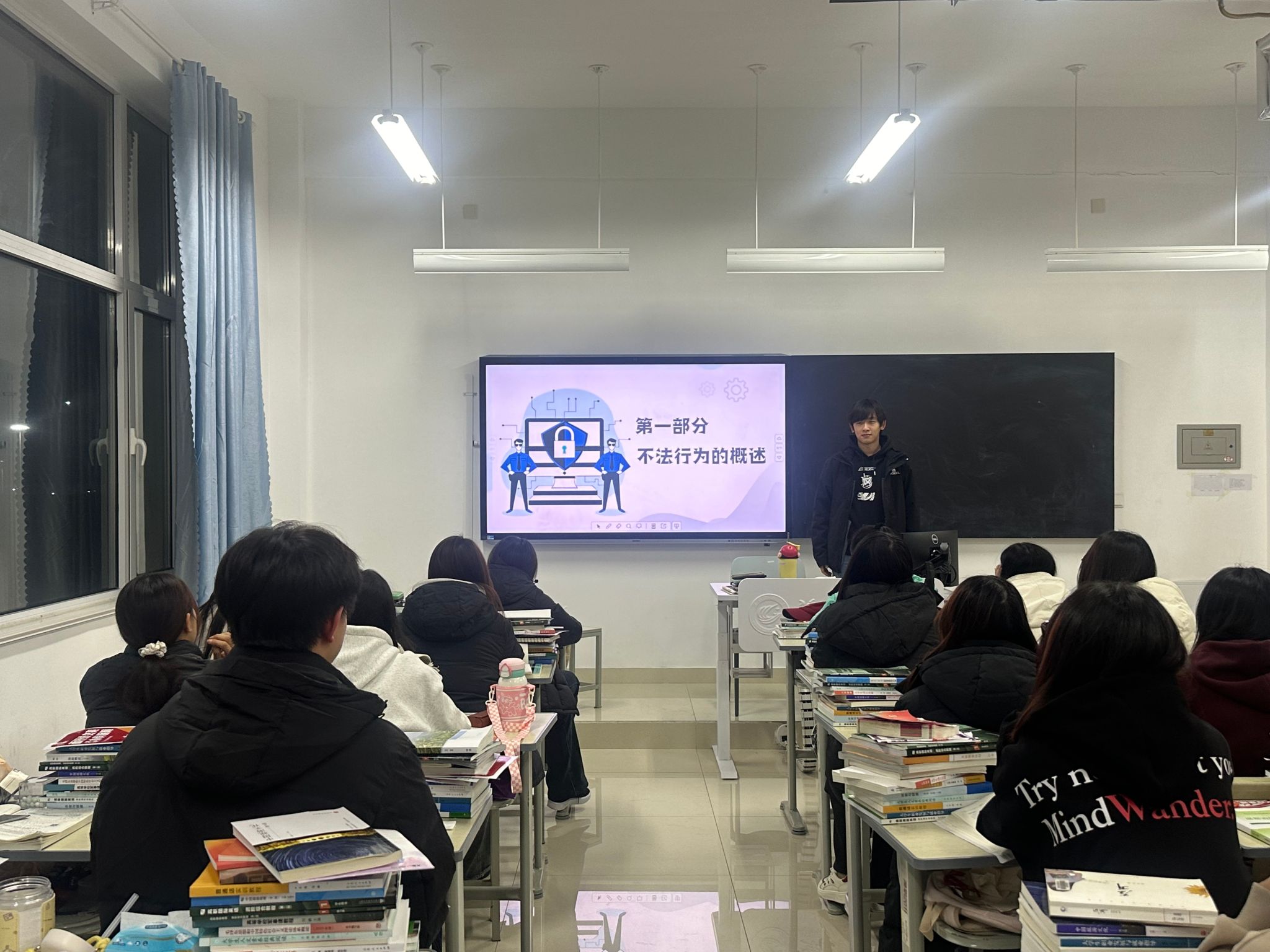 活动伊始,我院通过公众号、微信群向全体师生介绍了网络不法行为的基本概念以及违法违规的性质。随后,各班级组织主题班会。辅导员结合PPT和实际案例,深入浅出地讲解了网络不法行为可能带来的诸多危害,如沉迷网络会影响同学们的身心健康发展、价值观形塑以及造成个人信息暴露,不仅给个人乃至家庭带来不可预估的安全隐患,也对国家网络信息安全造成威胁,损害国家利益。同学们在认真聆听讲解后,纷纷表示意识到了网络不法行为的危险性,今后一定强化法律意识、纪律意识与防范能力,遵守网络安全规定。