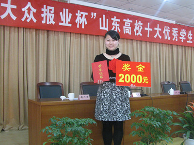 2011年的山东高校“十大优秀学生”的评选,参评的105名学生来自全省82所高校,经专家组认真评选审核,由评选表彰活动领导小组审定。李雅文所面对的竞争对手是本科生甚至研究生。问及她当时的想法,她说:“用一颗平常心去对待,因为我知道不是我没做好,只要我努力了就可以。”短短一句话,却包含了那么多无法用文字来描述的情感。她努力了、拼搏了,正是因为这个过程才让她有了收获,有了成长。“得之吾幸,失之吾命。”这是怎样一种淡然的心境,而幸运终会降临在付出努力、有准备的人的身上。
