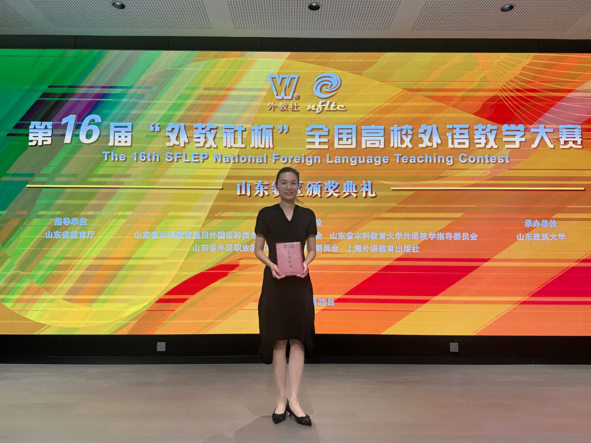 5月25-26日,第十六届“外教社杯”全国高校外语教学大赛山东赛区比赛在山东建筑大学举行,国际商务学院王宏芳教师团队在决赛中以第五名的成绩获得二等奖。