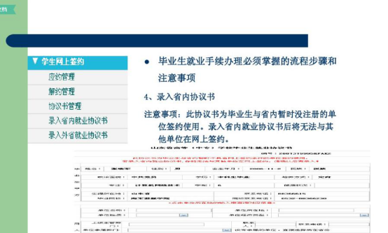 学生和企业签订劳动合同之前,双方会签订一份就业协议书。高校使用的就业协议书是由教育部高校学生司统一制订的,由学校、毕业生、用人单位三方共同签署后生效。它具有一定的广泛性和权威性,是学校制订就业方案、用人单位申请用人指标的主要依据,对签约三方都有约束力。应该注意的是,协议虽然不是劳动合同,但也是一个法律行为,所以在签订协议之前也要三思而后行。